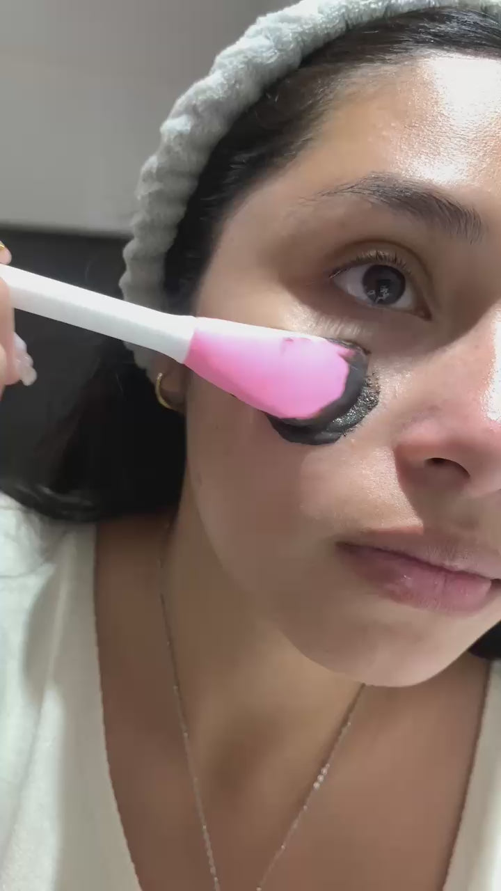 - Aplica una capa fina de barro negro (puede estar mezclado con agua, hidrolato o miel si querés potenciar el efecto).